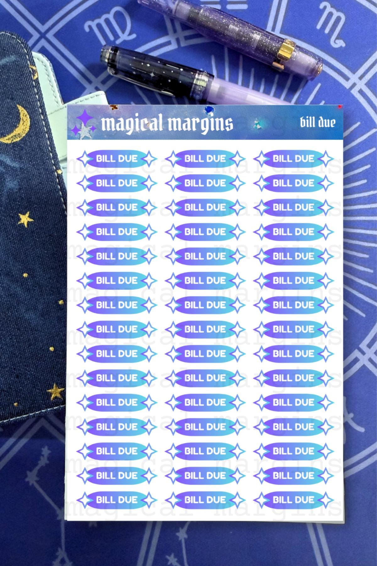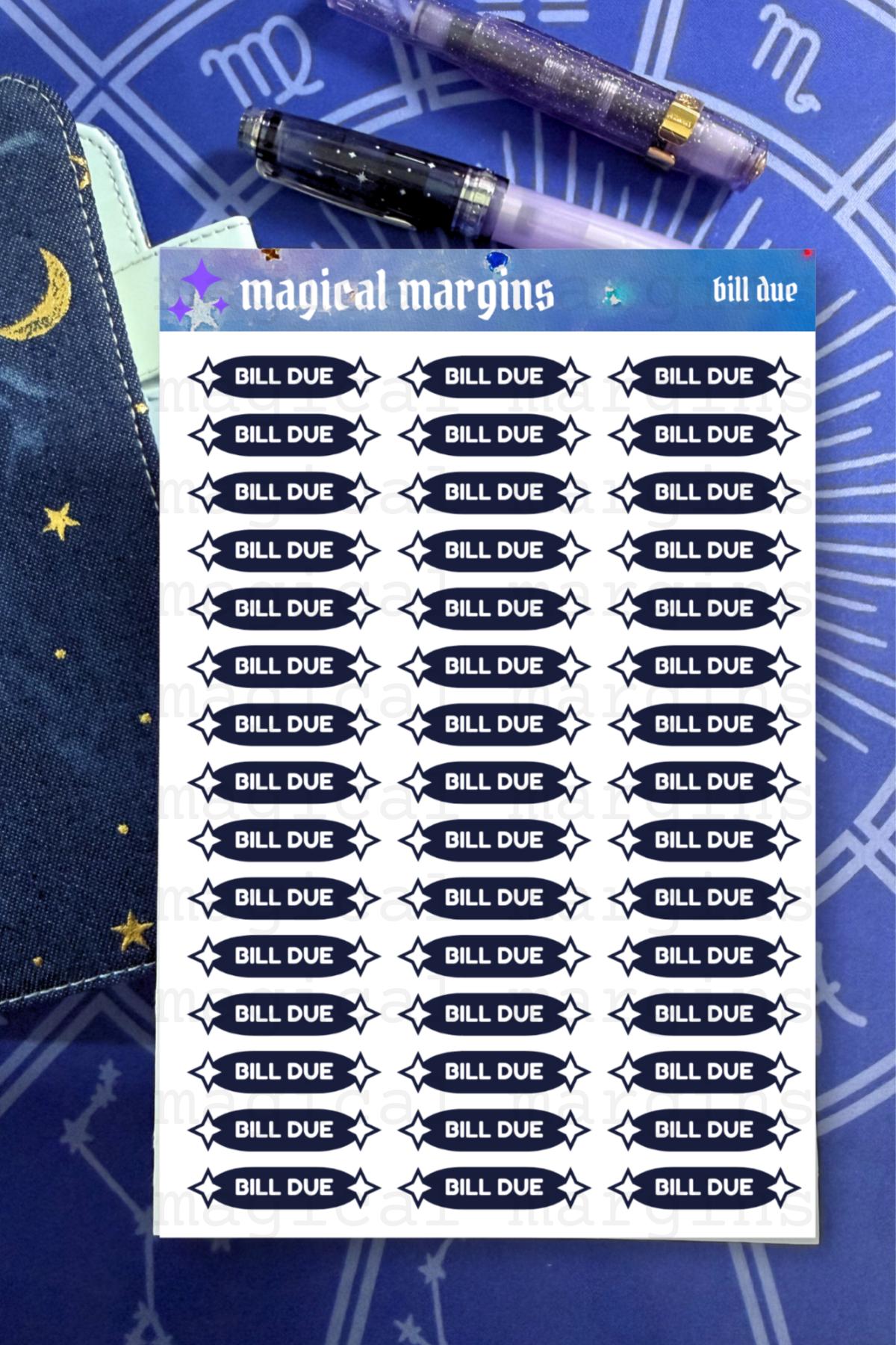 Bill Due Functional Planner Sticker for journal, planner, hobonichi, agenda.
