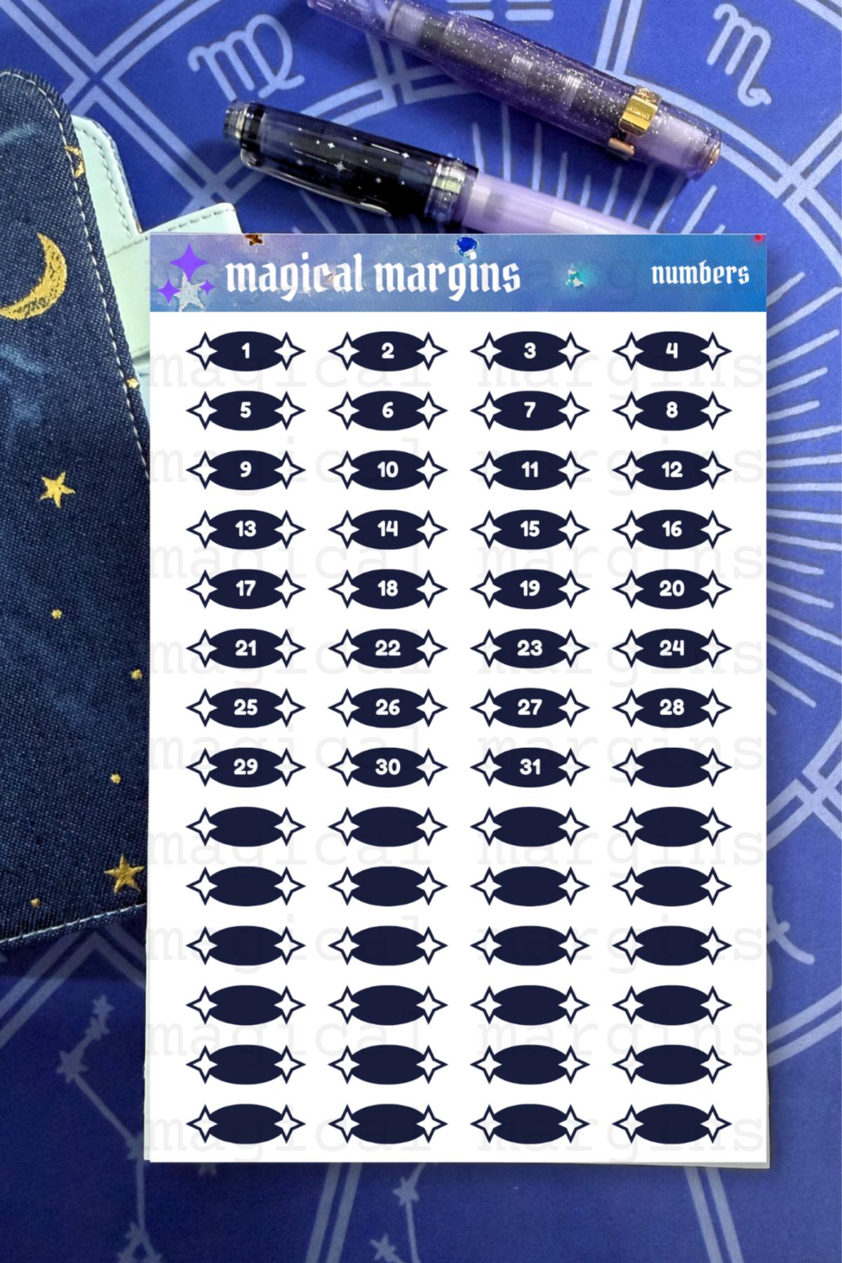 Monthly Numbers Functional Planner Sticker Sheet